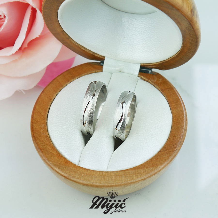 Poluoble burme od belog zlata, fino matirane sa talasastom šarom po sredini. Mogućnost izrade u žutom ili roze zlatu. Cena je za burme u paru.