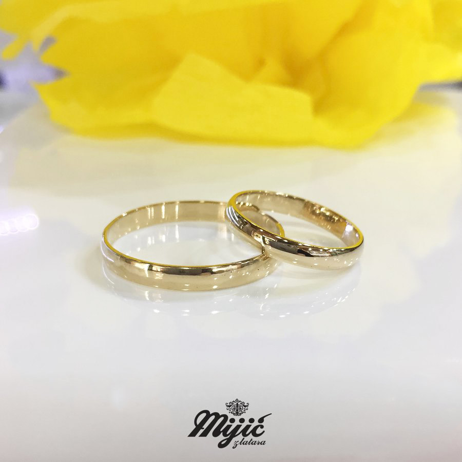 Kombinacija žutog, belog ili roze zlata, širine 3mm. Klasična, poluobla burma sa visokim sjajem.