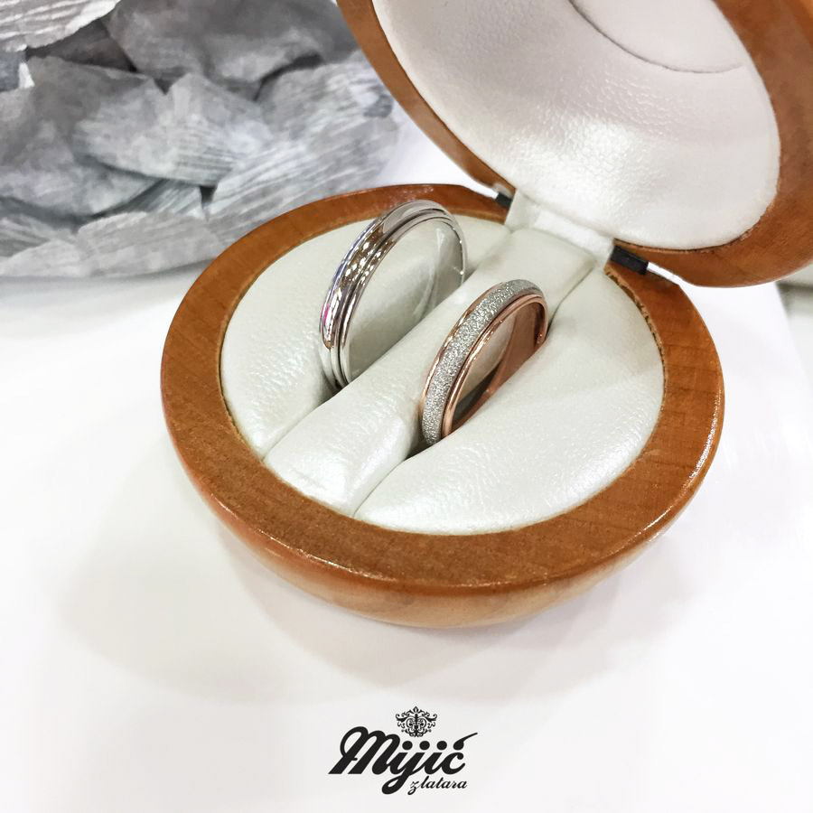 Ručno pikovan model. Kombinacija žutog, belog ili roze zlata. Muška polirana, ženska pikovana. Cena e za burme u paru.