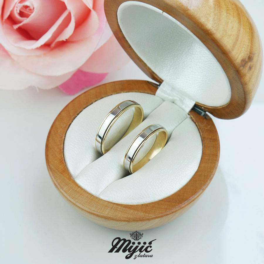 širine 4mm, glatkih, sjajnih površina. Mogućnost izrade u drugim kombinacijama belog, žutog i roze zlata.