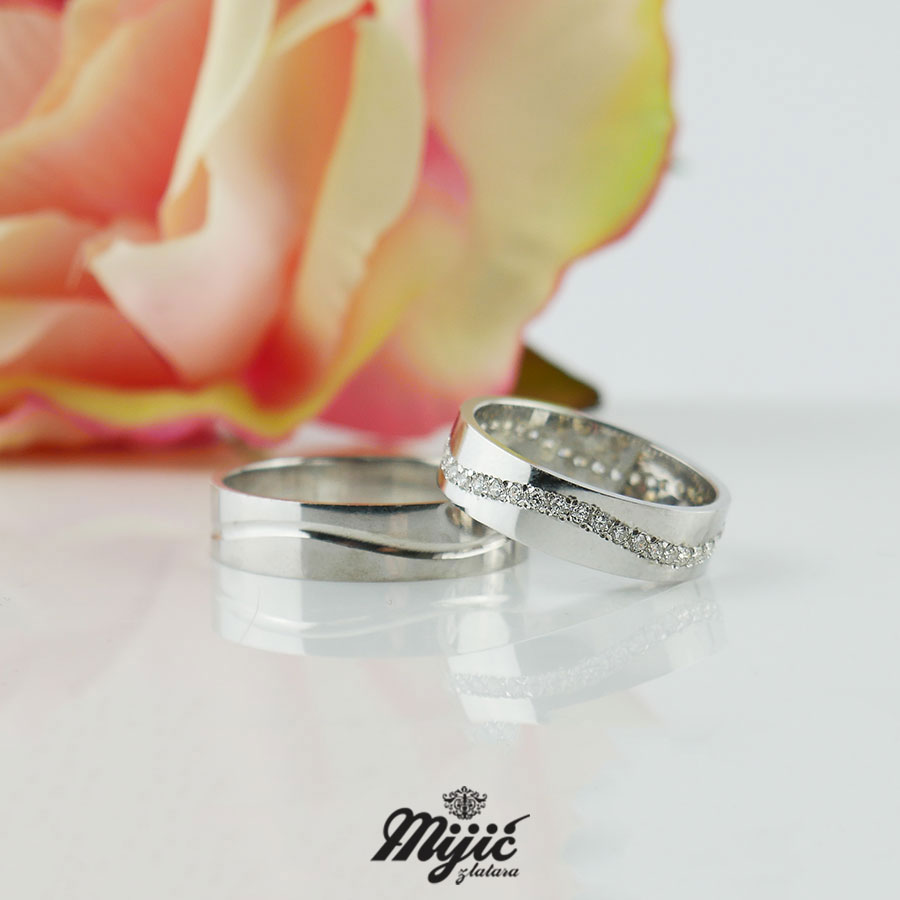 Ravne, polirane burme sa kanalom u obliku talasa celom dužinom. Ženska sa punim krugom cirkona. Cena je za burme u paru.