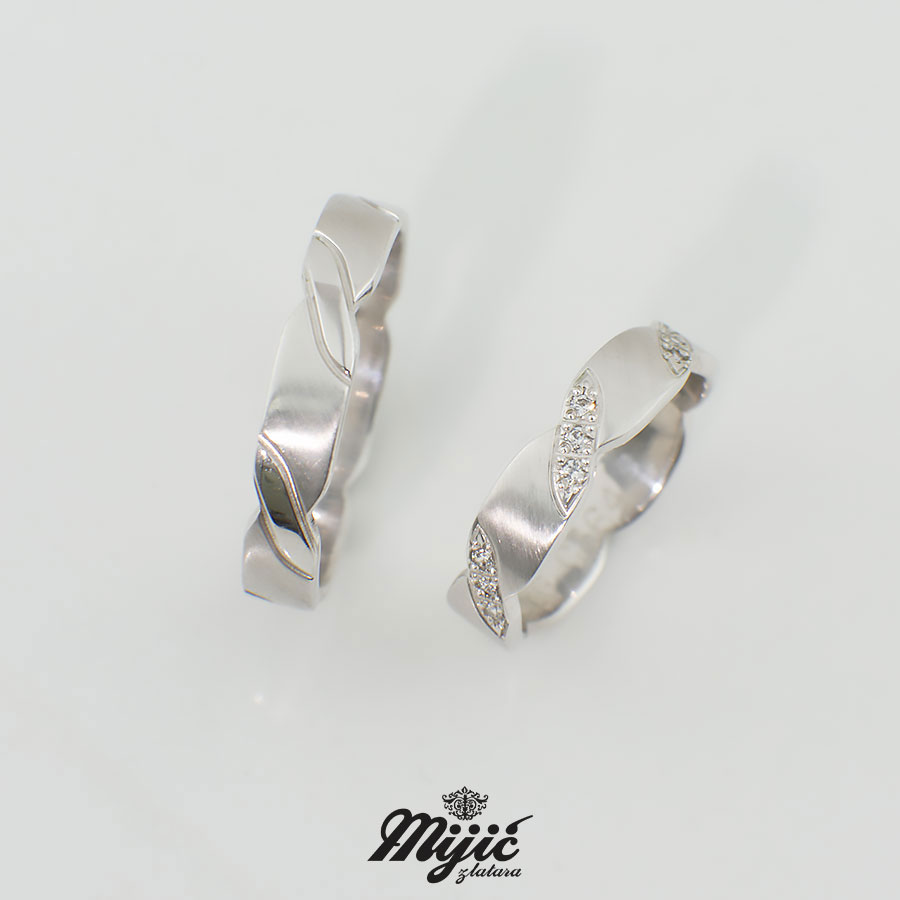 Unikatan model u kombinaciji matiranih i poliranih površina, ženska sa cirkonima. Cena je za burme u paru.