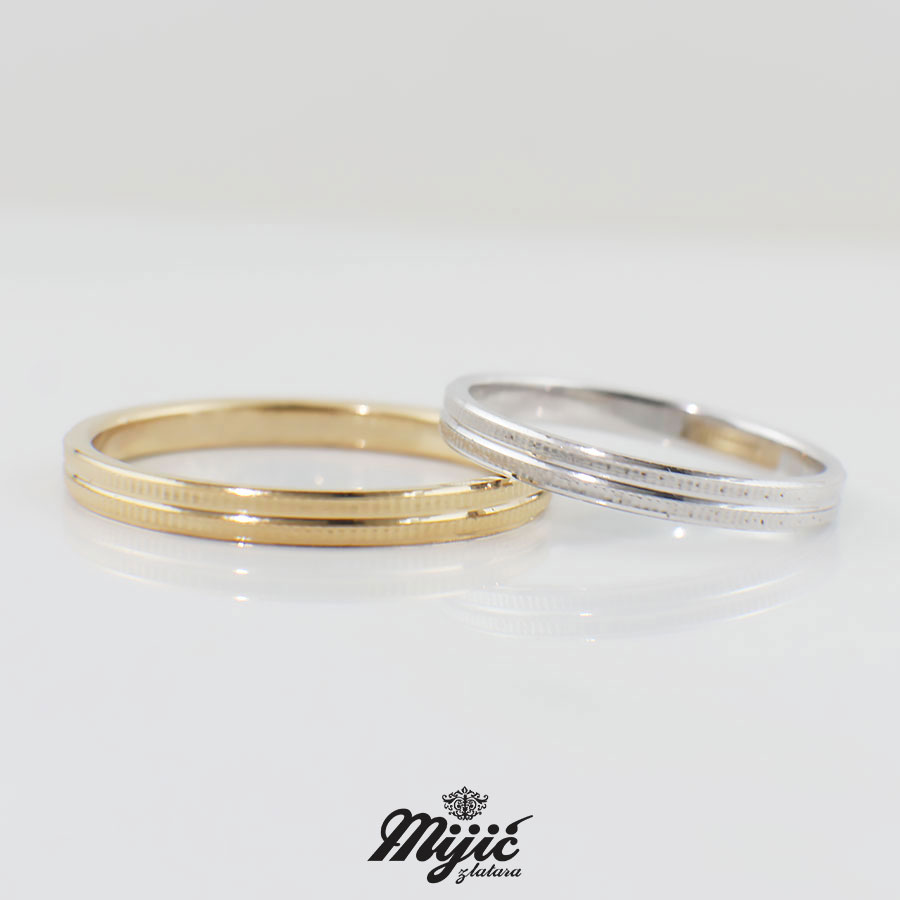 Minimalističke burme sa suptilno teksturisanim ivicama, u toplom tonu žutog zlata i elegantnom belom zlatu.