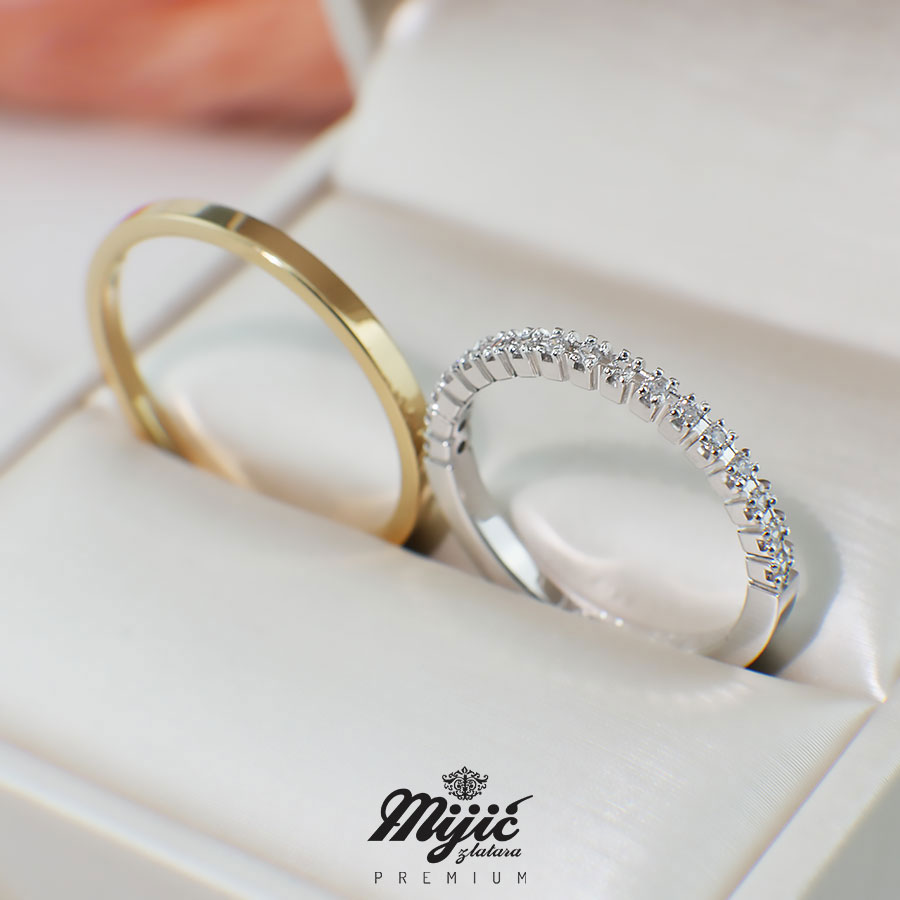 Minimalistička muška, i suptilna ženska burma sa redom cirkona u specijalno dizajniranim krunicama.