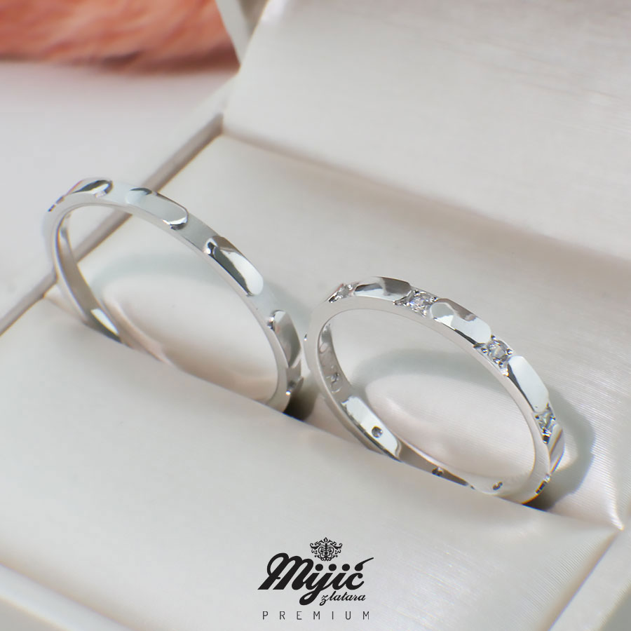 Par specifičnog dizajna, ženska burma sa nizom kamenja koji prate neobičan dizajn prstena, muška prati istu liniju.