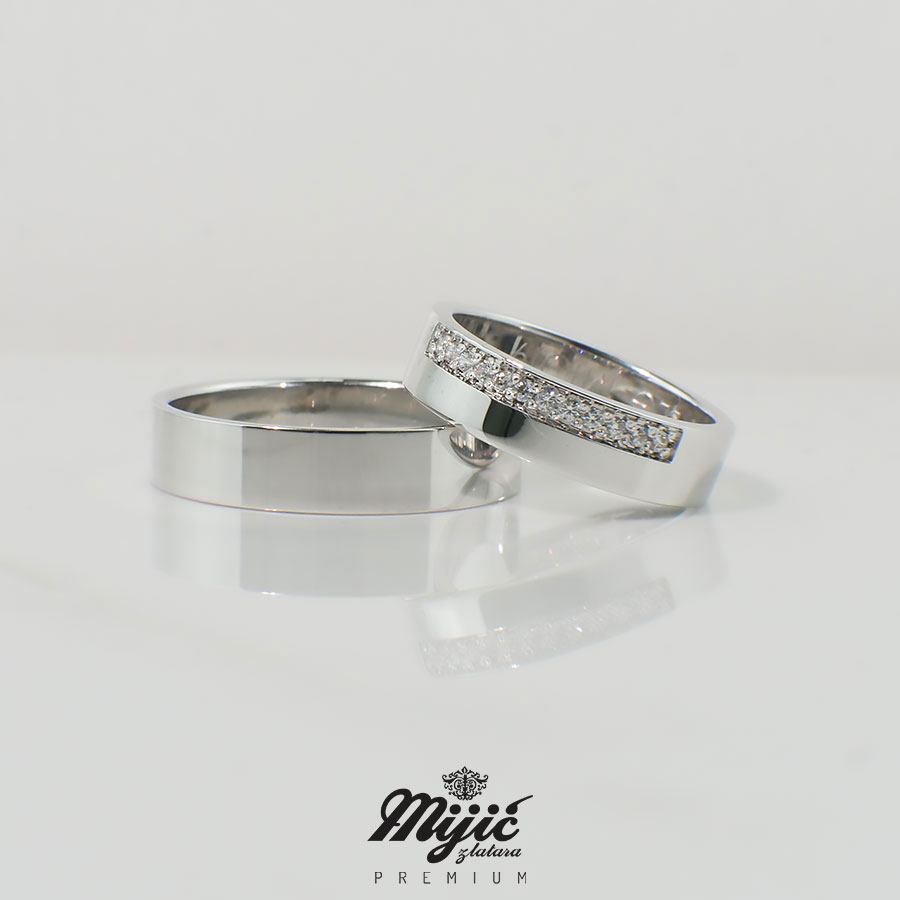 Muška burma u jednostavnom klasičnom dizajnu, ženska sa elegantnim redom cirkona duž ivice.