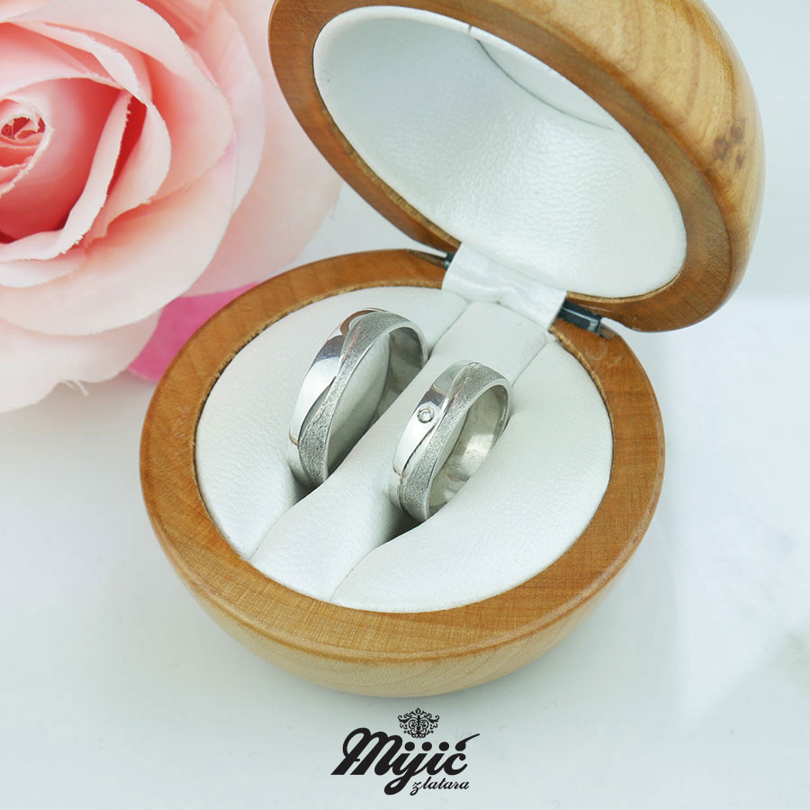 Burme od belog zlata, ručno matirane na pola. Ženska sa jednim cirkonom.