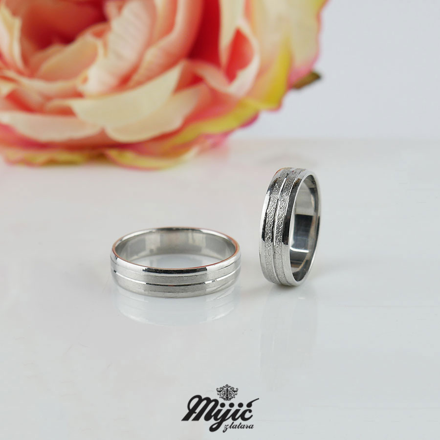 Ravne burme od belog zlata sa jednim kanalom po sredini i poliranim ivicama.