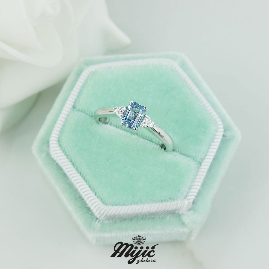 Verenički prsten sa centralnim akvamarinom 0,70ct. i brilijantima TCW 0,06ct.