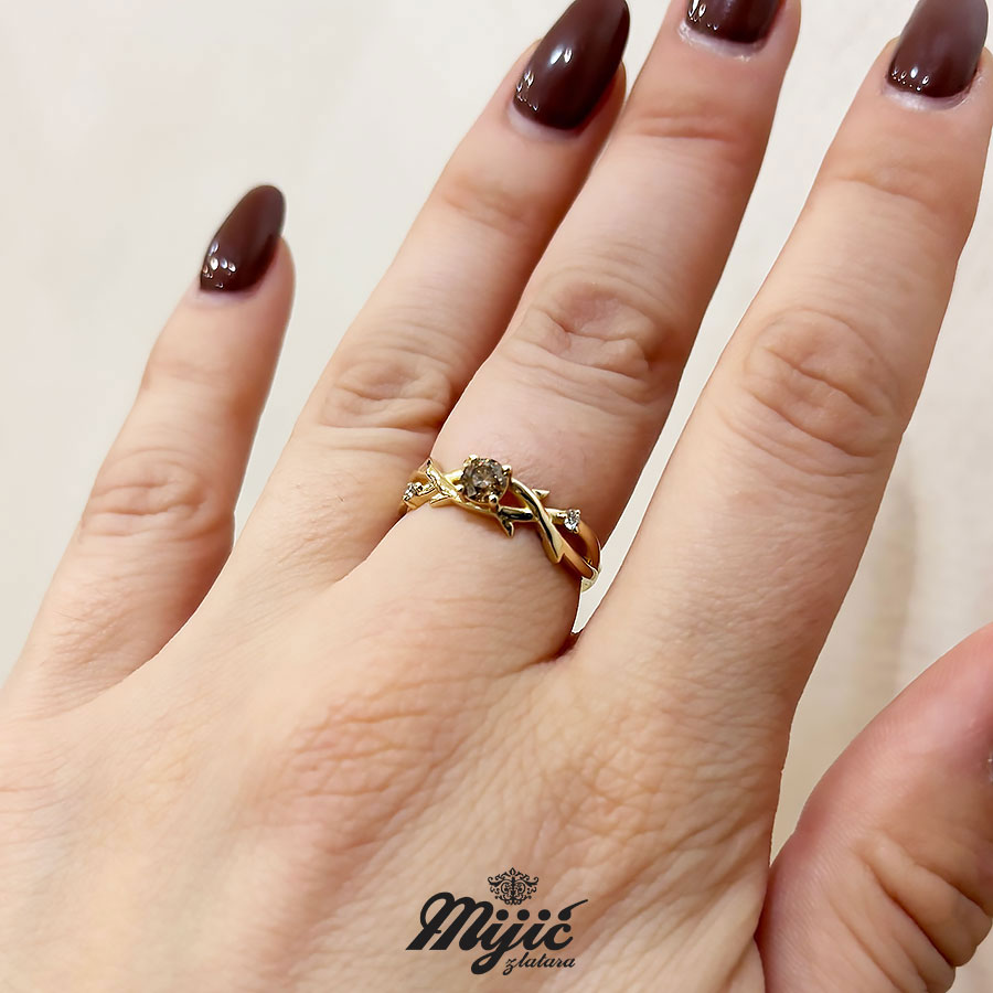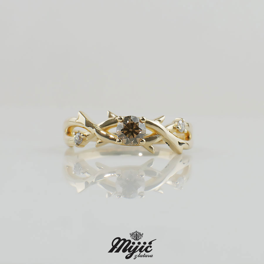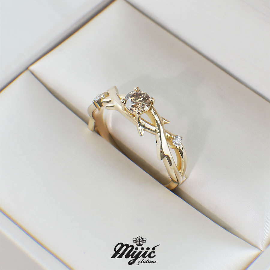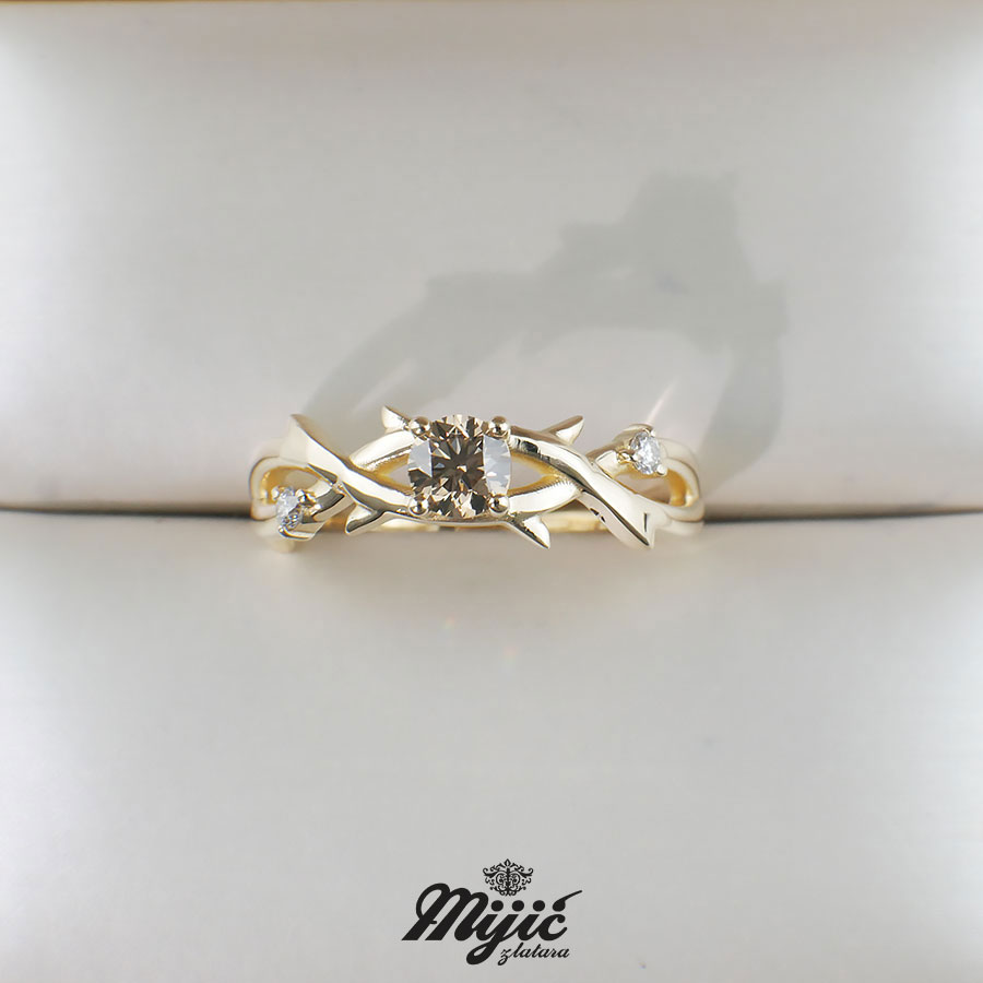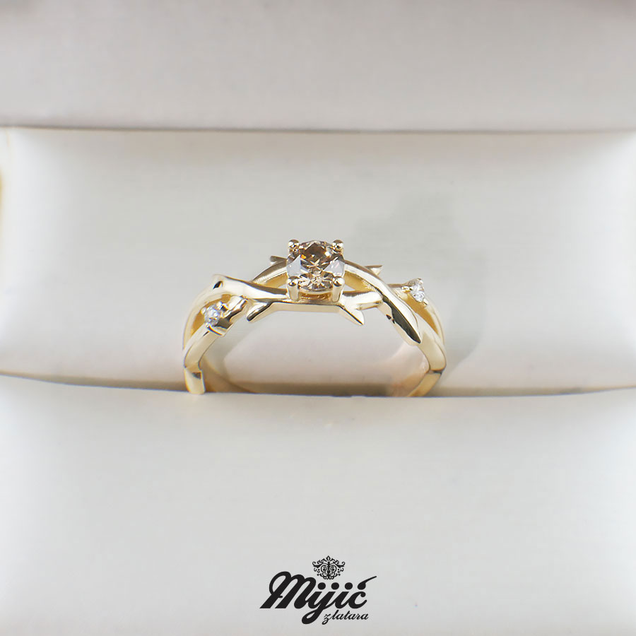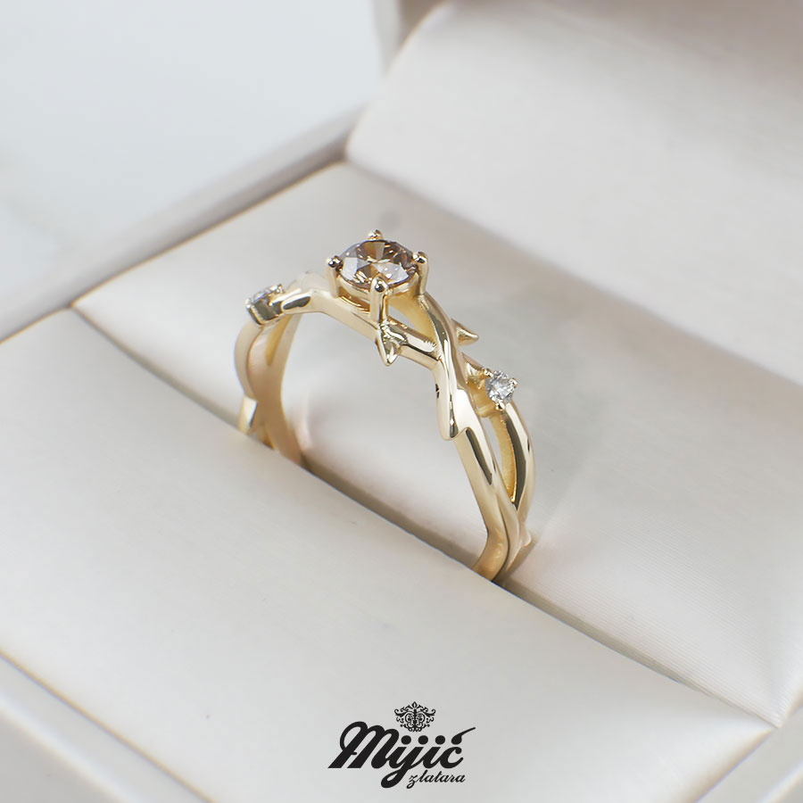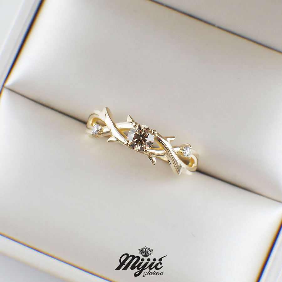 Verenički prsten sa šampanj dijamantom 0,31ct i brilijantima 2x0,025ct.