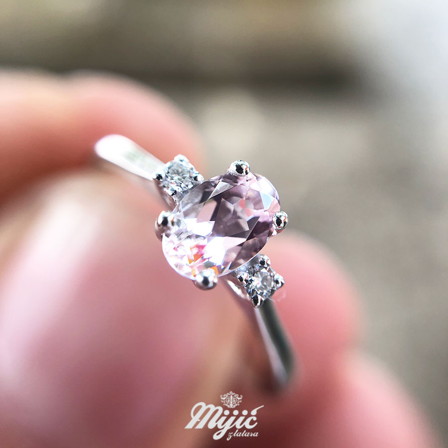 Verenički prsten sa morganitom 0.5ct i dva brilijanta ukupne težine 0.038ct Si/G.
