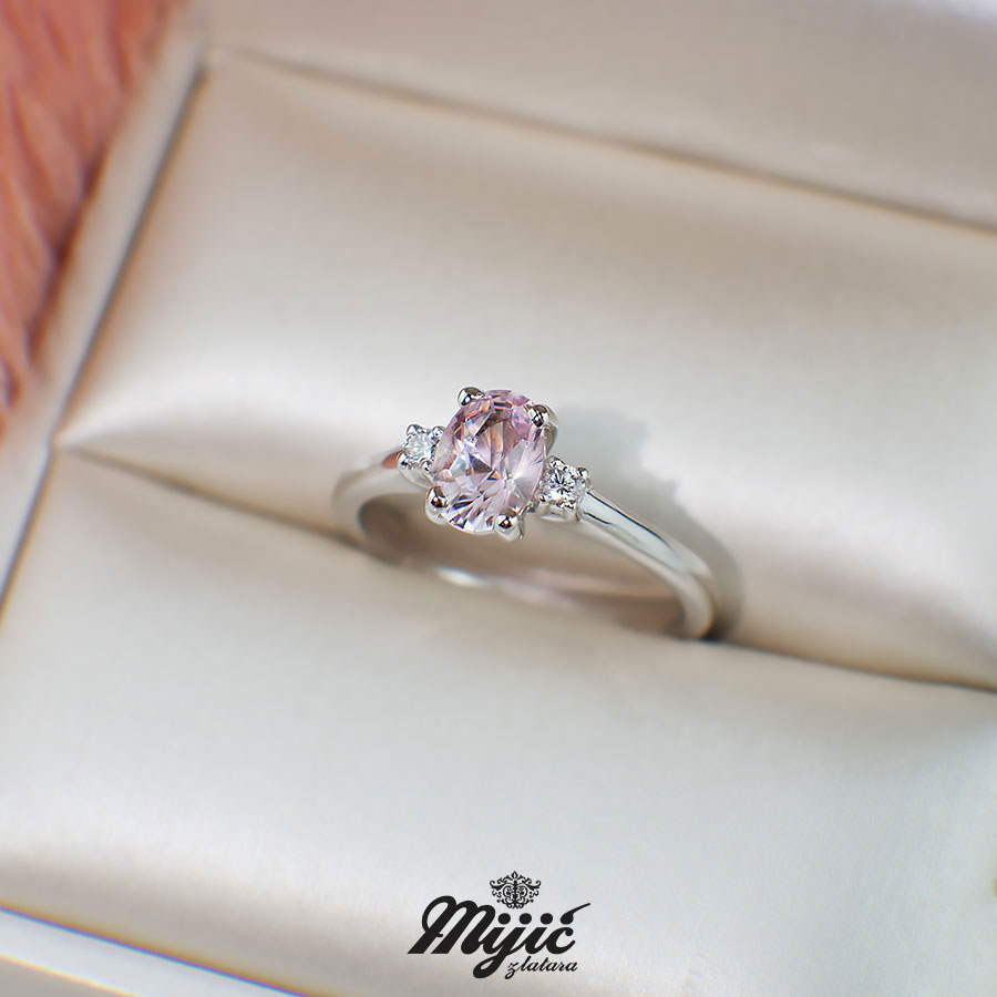 Verenički prsten sa morganitom 0.75ct i dva brilijanta ukupne težine 0.06ct Si/G.