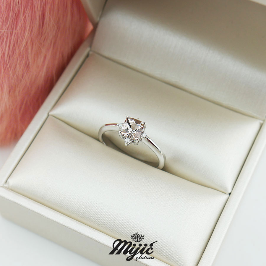 Verenički prsten sa morganitom veličine 0,7ct i brilijantima 0,04ct. Veličina .