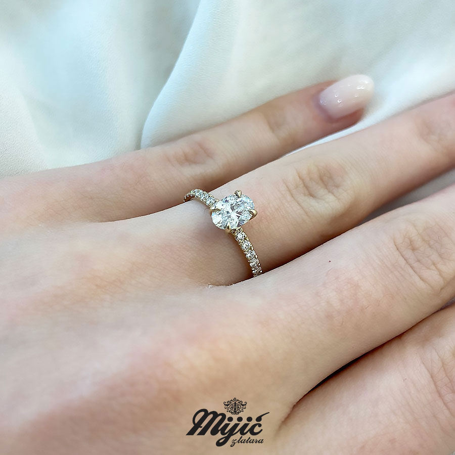 Verenički prsten sa centralnim lab dijamantom oval cut od 0,74ct D/VS2 sa IGI lab grown sertifikatom i 16 x 0.015ct DE/VS.