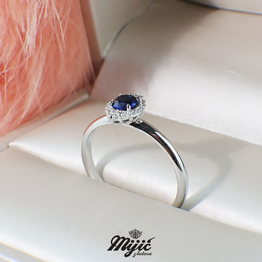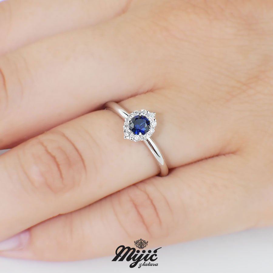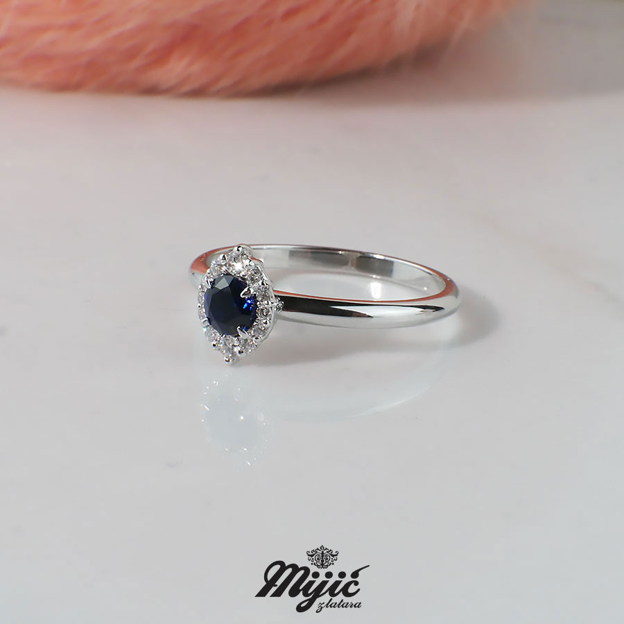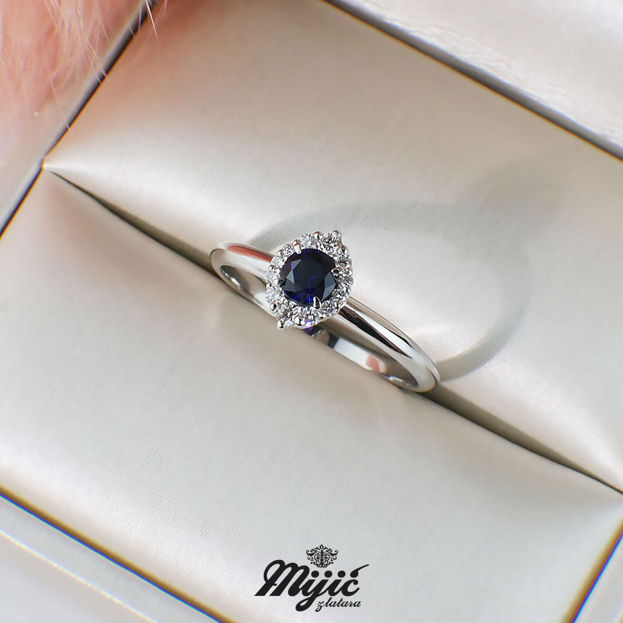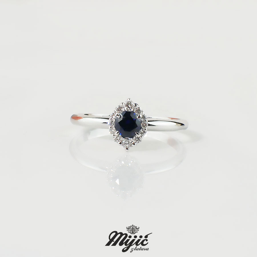 Verenički prsten sa safirom 0.34ct i brilijanti ukupne težine 0.11ct Si/G.