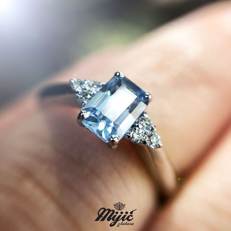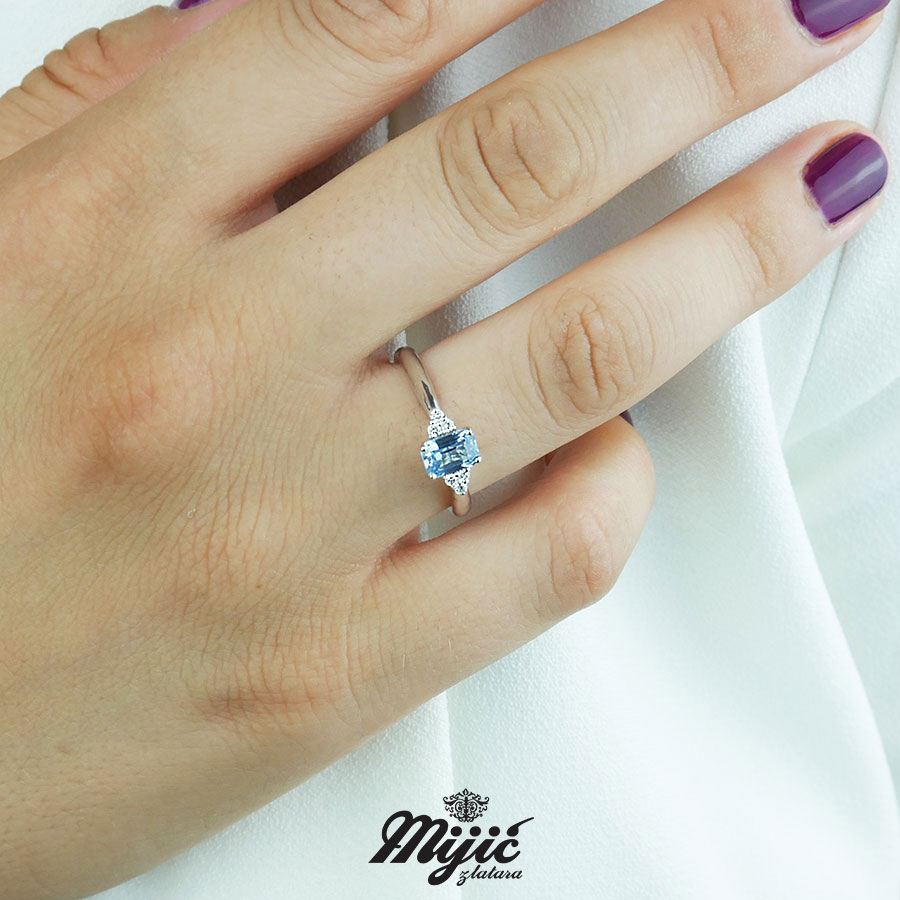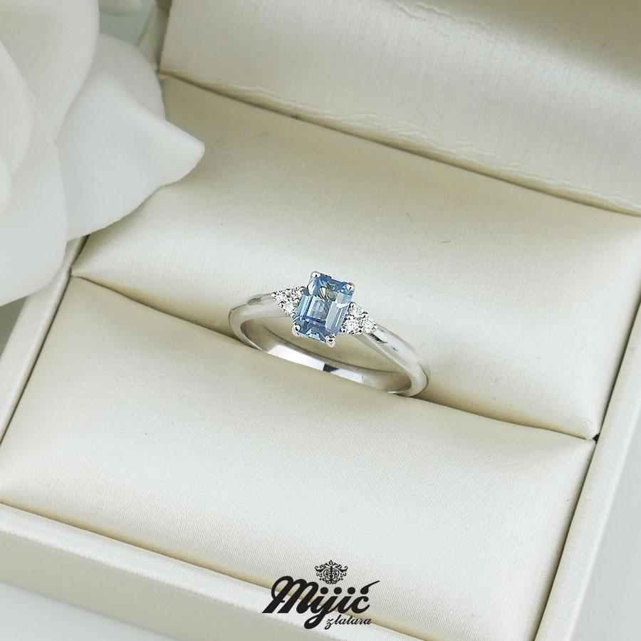 Verenički prsten sa centralnim akvamarinom 0,70ct. i brilijantima TCW 0,06ct.