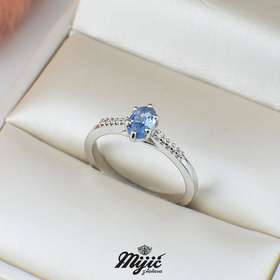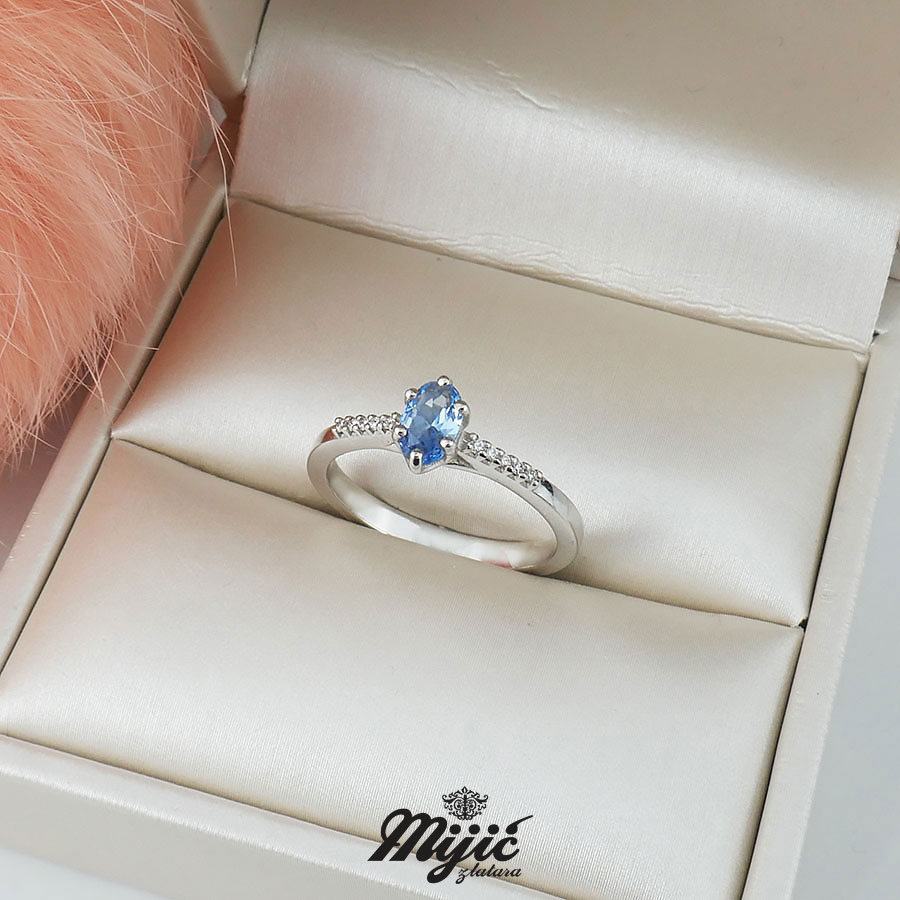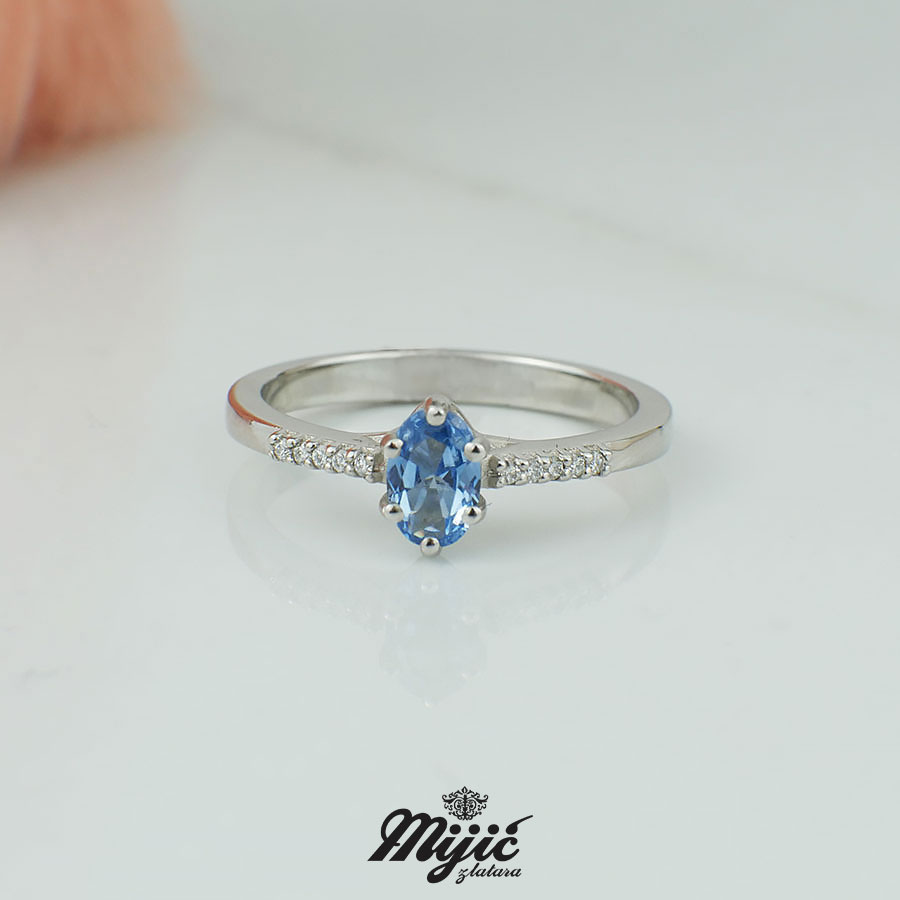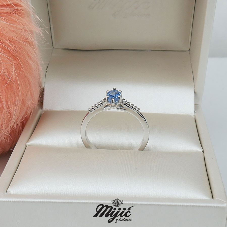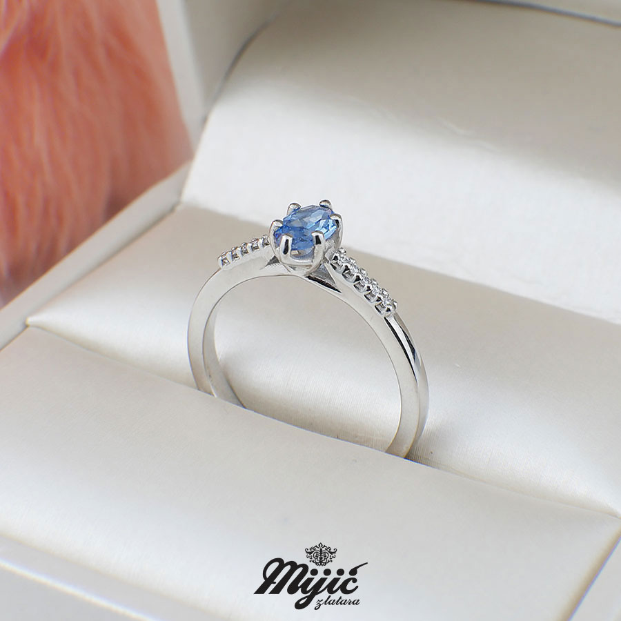 Verenički prsten sa swiss blue topazom veličine 0,50ct i brilijantima 0,05ct VS/G. Veličina .