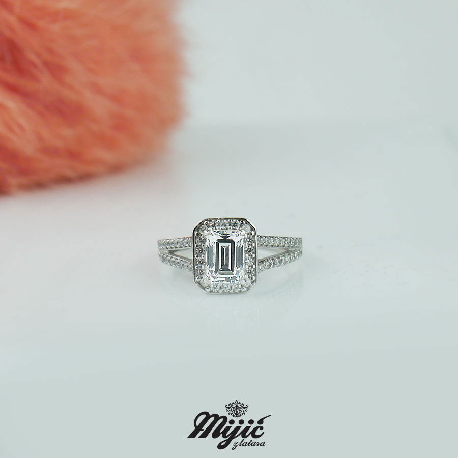Prsten od belog zlata sa cirkonima.