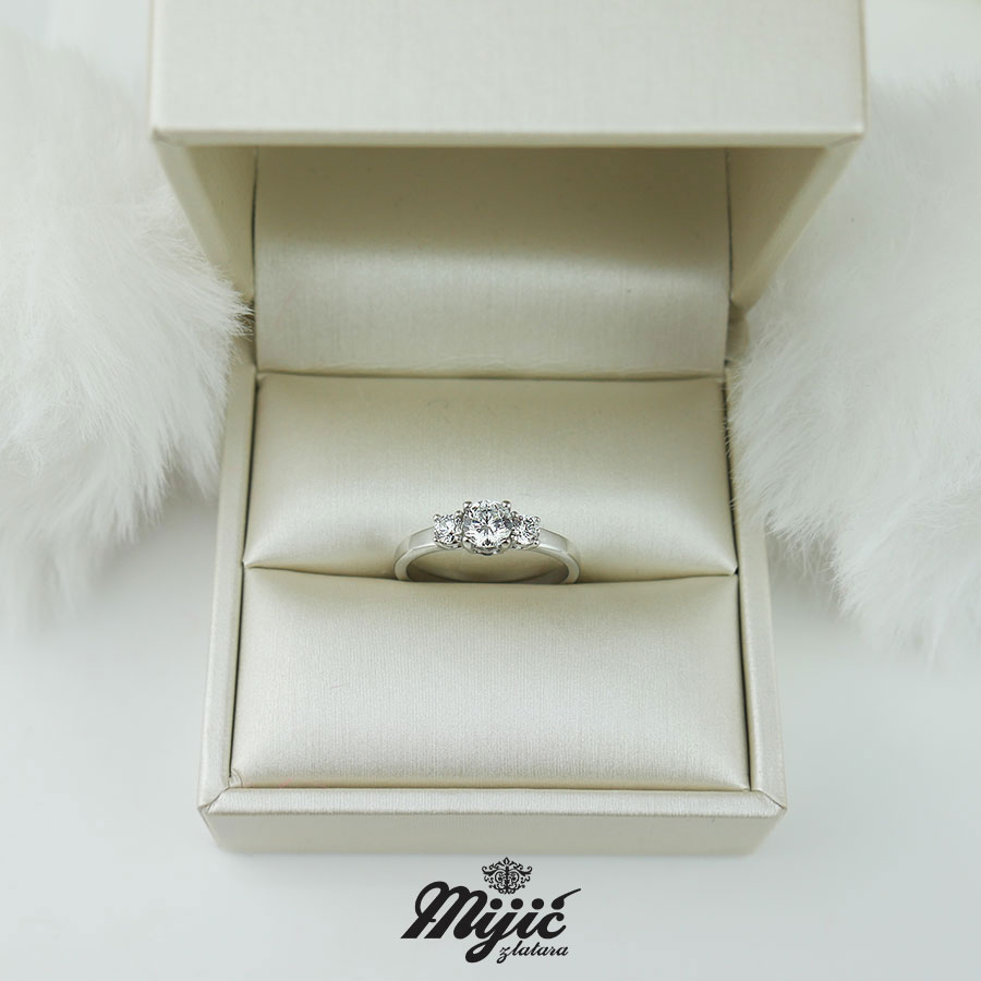 Verenički prsten Cecily od belog zlata sa centralnim kamenom i cirkonima sa strane.