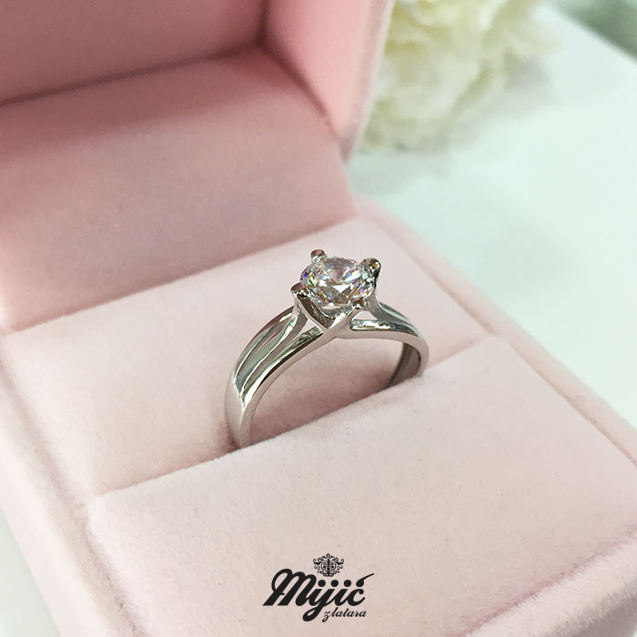 Verenički prsten Lydia od belog zlata sa centralnim kamenom.