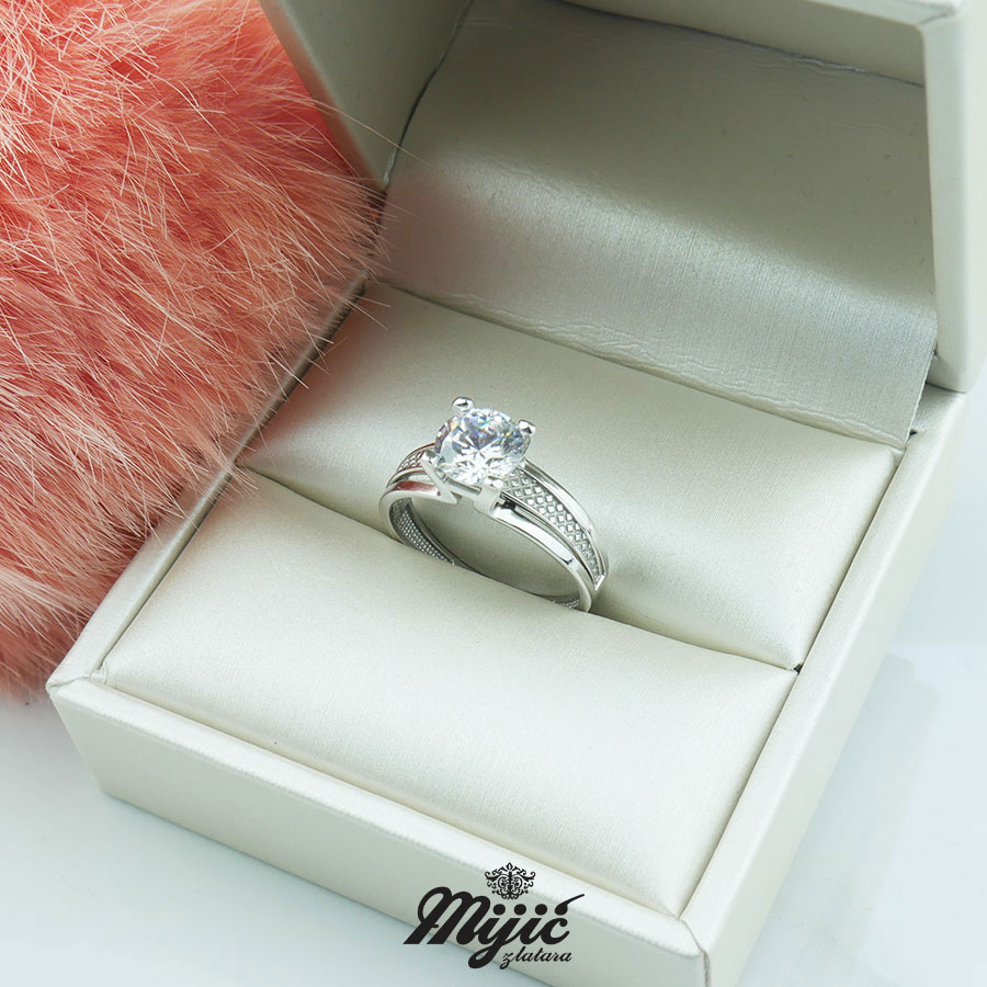 Verenički prsten Alisa od belog zlata sa centralnim kamenom.