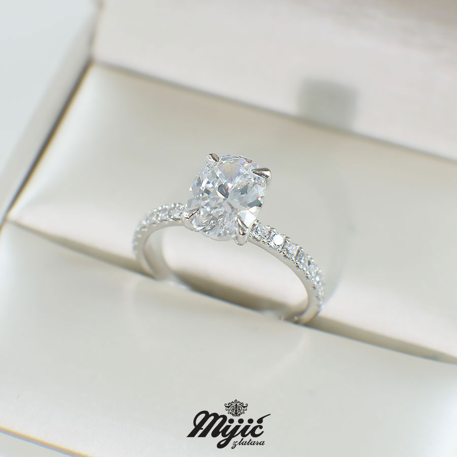Verenički prsten Provance od belog zlata sa centralnim kamenom i cirkonima sa strane.