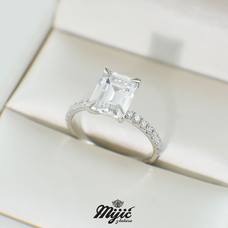 Verenički prsten Pompeii od belog zlata sa centralnim kamenom i cirkonima sa strane.