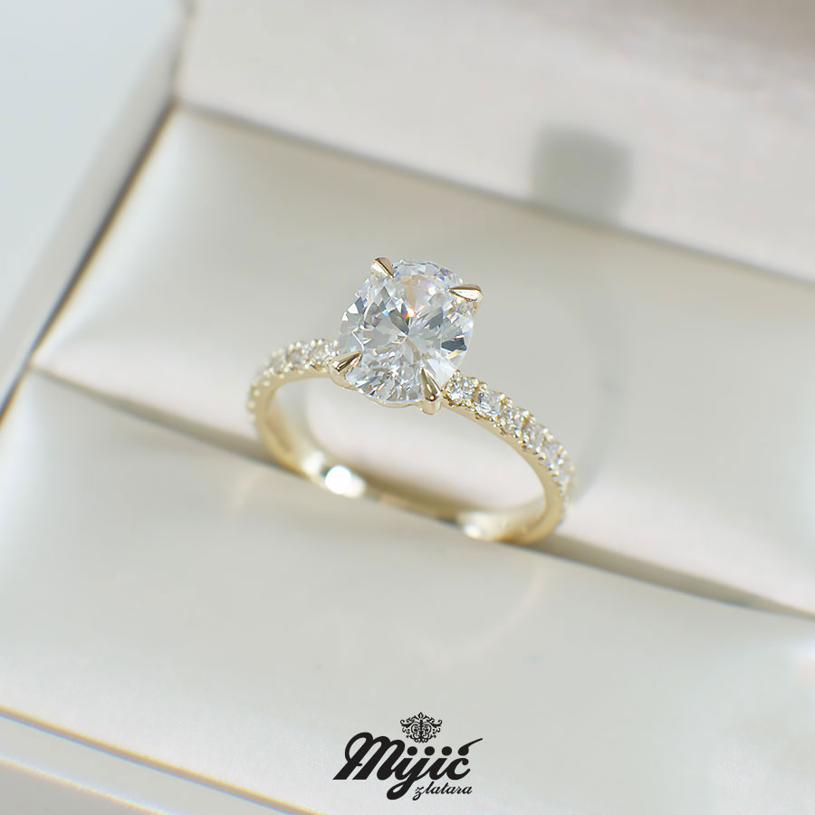 Verenički prsten Provance od žutog zlata sa centralnim kamenom i cirkonima sa strane.