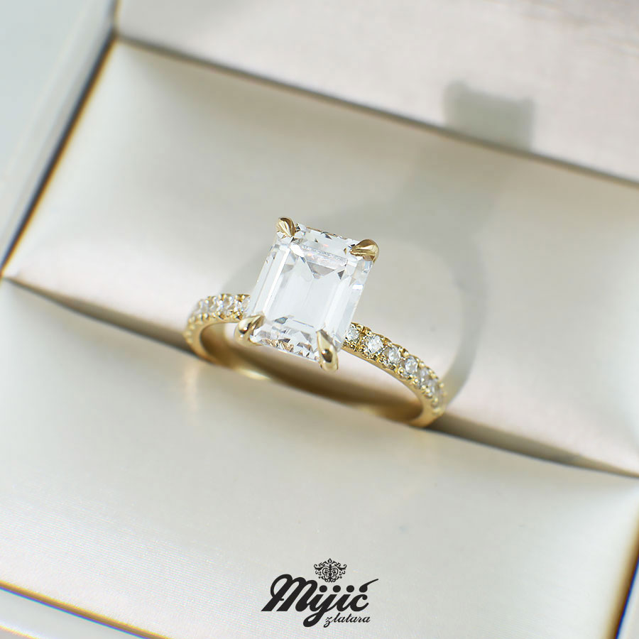 Verenički prsten Pompeii od žutog zlata sa centralnim kamenom i cirkonima sa strane.