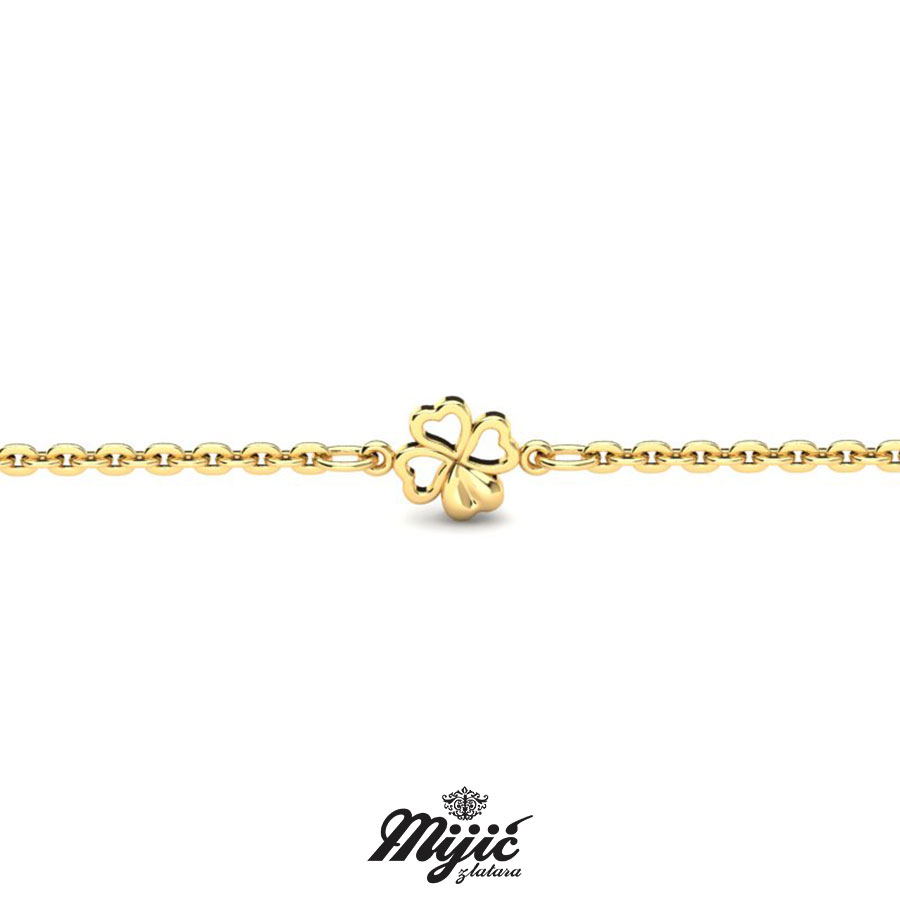 Narukvica od zlata sa priveskom. Sav nakit od zlata je finoće 585/1000.