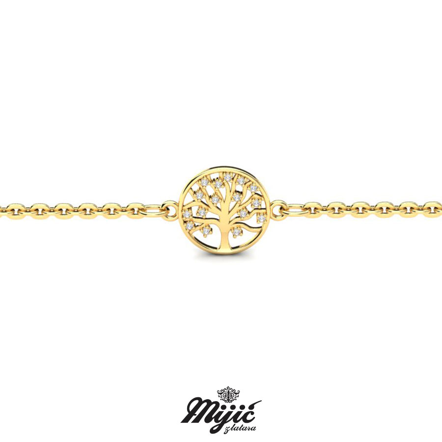 Narukvica od zlata sa priveskom. Sav nakit od zlata je finoće 585/1000.