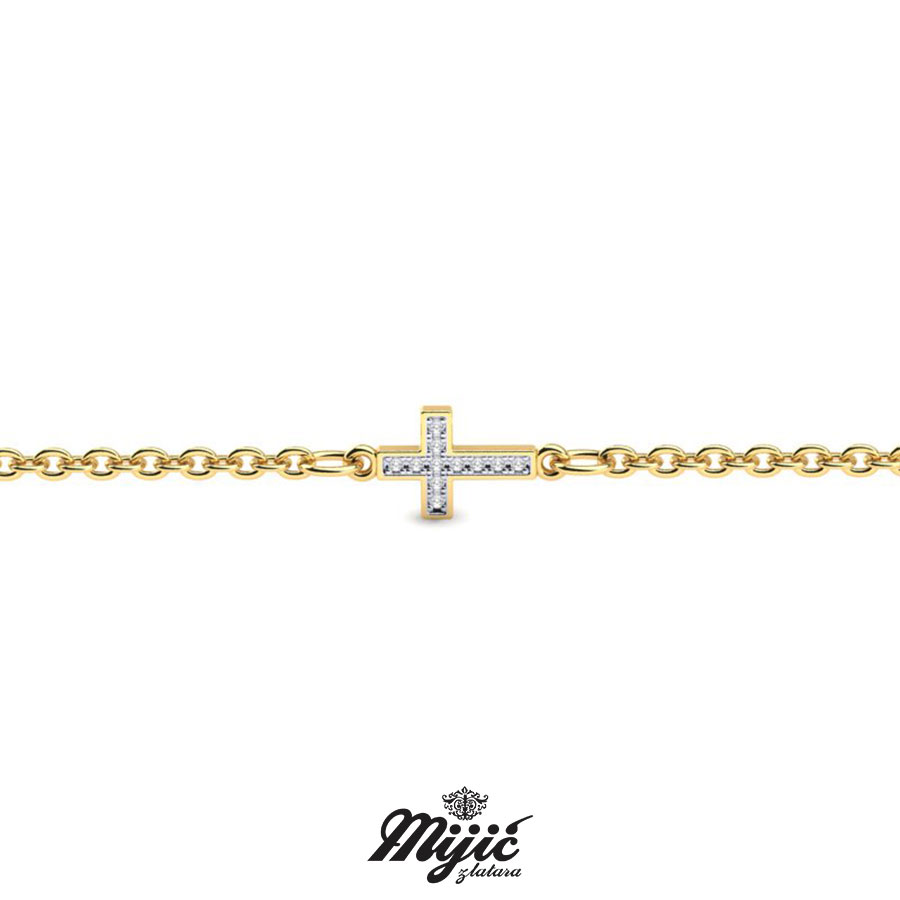 Narukvica od zlata sa priveskom. Sav nakit od zlata je finoće 585/1000.
