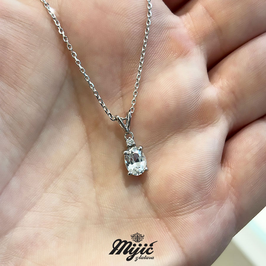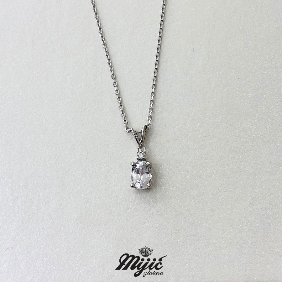 Ogrlica od belog zlata sa belim safirom 1,20ct i brilijantom 0,03ct SI/G. Sav nakit od zlata je finoće 585/1000.