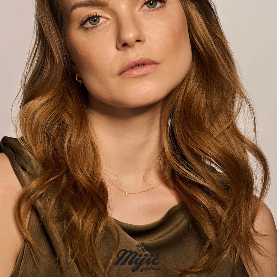 Ogrlica od zlata holandskog brenda Blush. Slovo je 3d, visine 5mm. Dužina ogrlice je 42cm. Sav nakit od zlata je finoće 585/1000.
