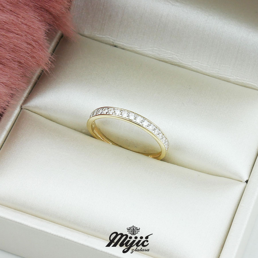 Prsten od belog zlata sa cirkonima. Sav nakit od zlata je finoće 585/1000. Veličina 14.5.